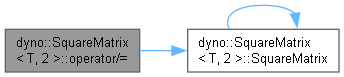 | DYN_FUNC SquareMatrix< T, 2 > & dyno::SquareMatrix< T, 2 >::operator= | ( | const SquareMatrix< T, 2 > & | mat | ) |